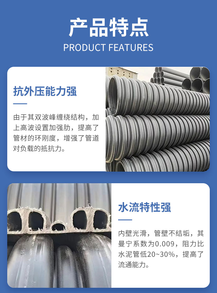 高密度聚乙烯(HMWHDPE) 雙波峰纏繞結構壁管